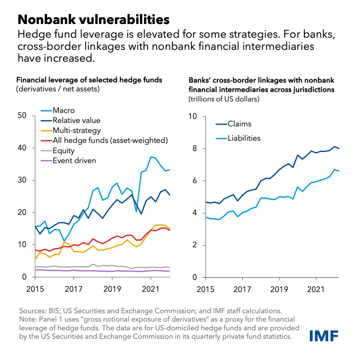 Such risks could intensify in coming months amid the continued tightening of monetary policy globally, making it especially important to understand and safeguard this broad swath of the financial sector that comprises an array of institutions beyond banks. Nonbank financial intermediaries, including pension funds, insurers, and hedge funds, also play a key role in the global financial system by providing financial services and credit and thus supporting economic growth.