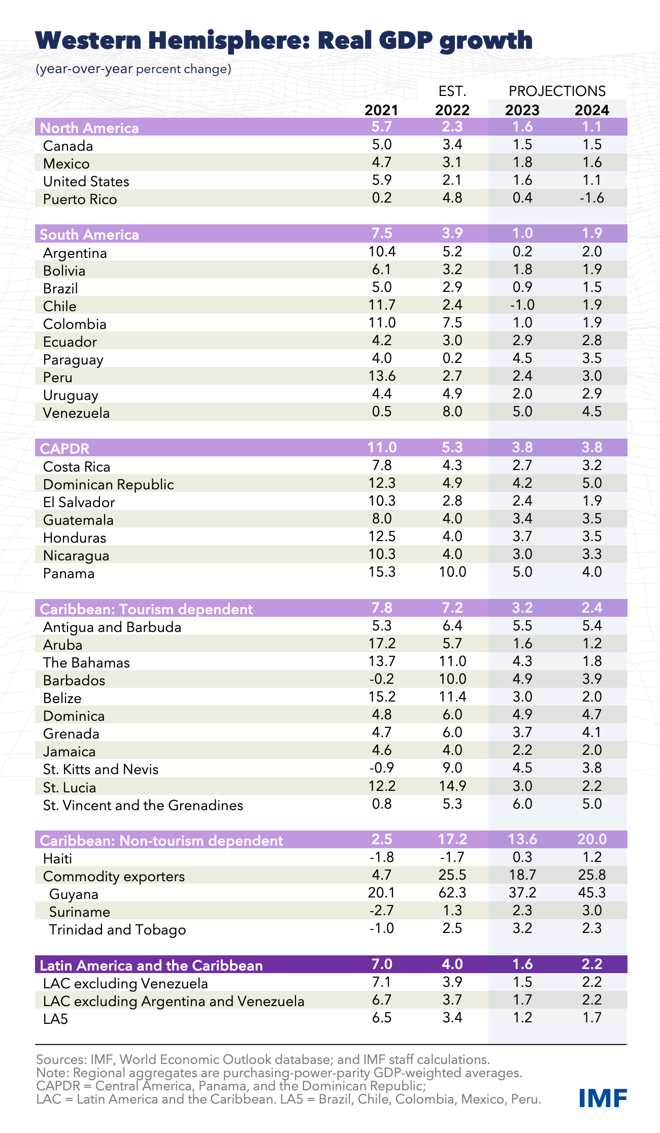 Growth in Latin America is projected to slow to 1.6 percent this year after a remarkable 4 percent in 2022. Price pressures that accompanied last year’s brisk economic activity appear to have peaked, but underlying inflation remains stubbornly high, disproportionally hurting low-income households who spend most of their earnings on food. To mitigate the risk that inflation becomes entrenched, fiscal policy can help monetary policy in reducing demand pressures.