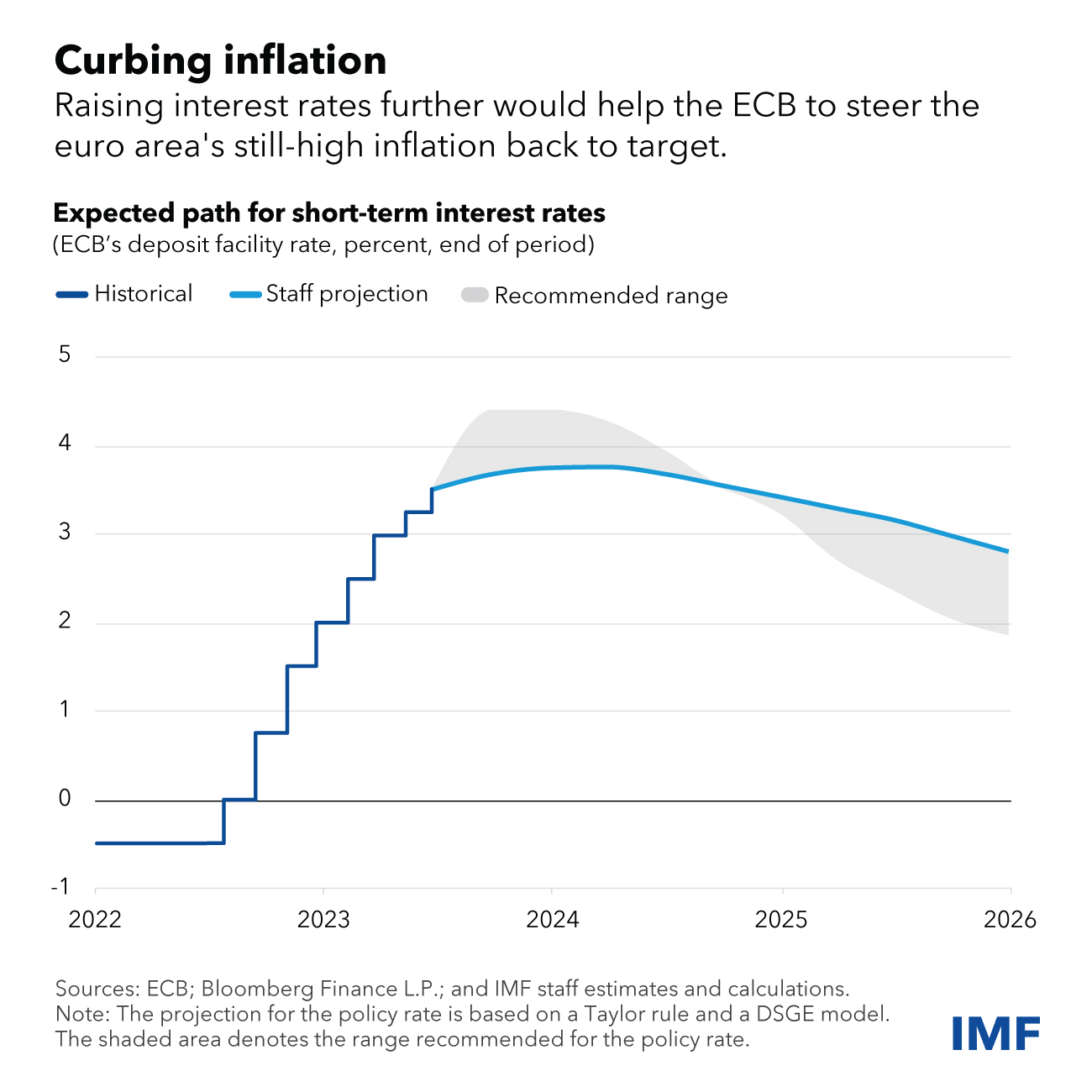 The European Central Bank could prevent inflation expectations from becoming unmoored and drifting upwards by continuing to raise its policy rate, as discussed in our recent report on the euro area. A further tightening of monetary policy in the near term would prevent much more costly measures later to bring inflation back to target.