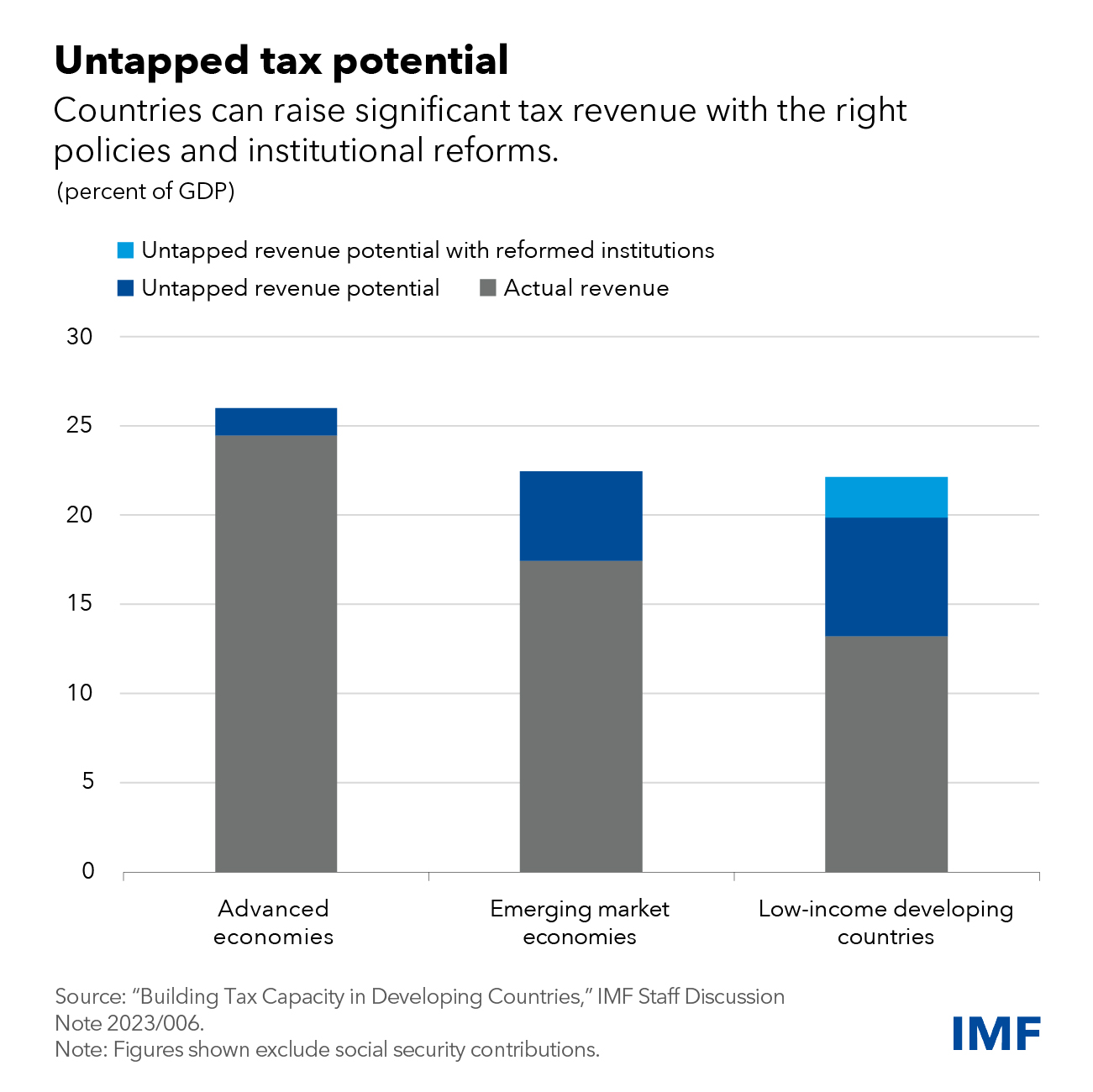 Emerging market and low-income economies have a significant untapped tax potential of 8 percent to 9 percent of GDP