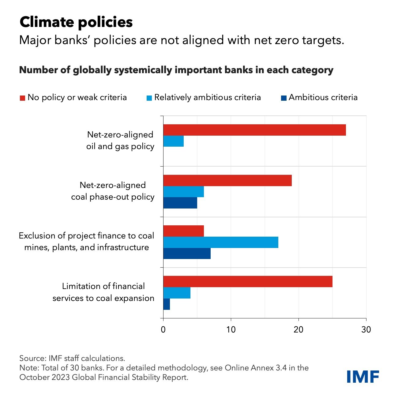 Beyond these challenges, climate policies and commitments at most major banks are still not aligned with net-zero climate targets, even when they do have policies intended to reduce emissions.