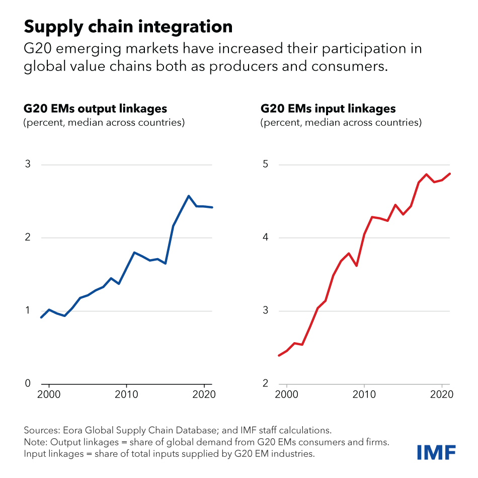 The global economy is increasingly influenced by the Group of Twenty’s large emerging markets. Over the past two decades, these economies have become much more integrated with global markets and are generating larger economic “spillovers” to the rest of the world.