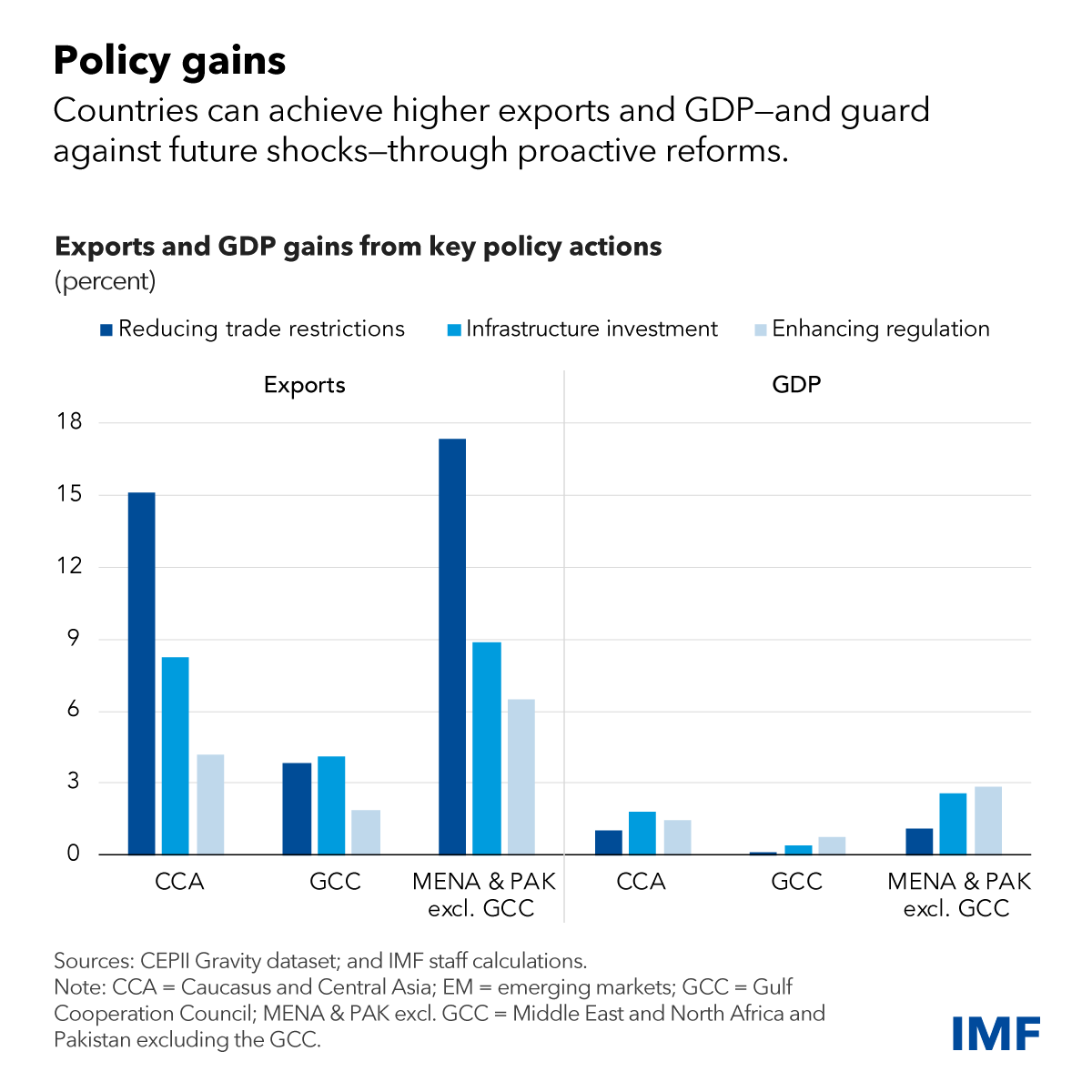 Targeted policy reforms can help do this, though preparation is crucial. Reducing nontariff trade barriers, boosting infrastructure investment, and enhancing regulatory quality could help increase trade by up to 17 percent on average over the medium term, our research shows, while economic output could be 3 percent higher. This would also enhance resilience against future trade shocks.