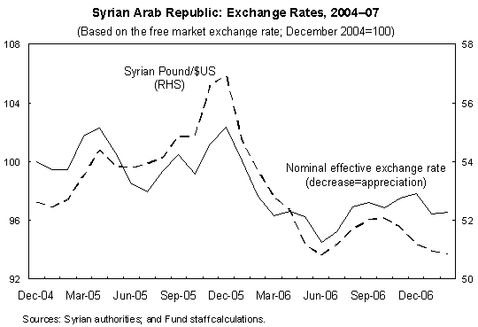 13. The growth outlook for 2007 remains favorable. The critical mass of reforms implemented in recent months, the continued direct and indirect support of aggregate demand from the Iraqi presence, and favorable growth prospects globally and in the region are expected to continue to underpin private consumption and non-oil exports, as well as a possible strengthening of private investment. These factors could sustain the growth momentum at about the same pace as in 2006.3 Any slowdown of capital inflows associated with the Iraqis will dampen aggregate demand directly and through second round effects, including an unwinding of the wealth effect induced by the real-estate boom. However, a normalization of the political situation in Iraq could open a large market for Syrian products. 14. To keep inflationary pressures in check, macroeconomic policies should remain appropriately tight. The current level of benchmark interest rates is appropriate and state banks' lending should remain in line with the monetary objectives. Fiscal policy should aim to reduce the overall budget deficit to about 5 percent of GDP mainly by phasing out petroleum price subsidies and further rationalizing of expenditures. Civil service wage policy, which leads wage policy in the rest of the economy, has a major role to play in curbing inflation, by ensuring that wage increases do not run ahead of productivity gains. 15. Syria needs to continue to grow faster but it also needs to grow better in the coming years. The growth acceleration in the past two years seems to have been largely driven by private consumption, with an initial impulse originating from the influx of Iraqis. For this growth to strengthen and solidify, it is important that the sources of growth be rebalanced toward investment and durable gains in external market shares. Stronger investment growth and higher productivity are the bedrocks of high and sustainable growth in the long run. 16. To rebalance growth, Syria should continue to strengthen its macroeconomic policy frameworks and to accelerate structural reforms. Policies geared toward accelerating reforms and preserving financial stability could validate investors' expectations and strengthen savers' confidence about returns on Syrian assets. A positive synergy—such as the one witnessed in the rapid take-off of private banking—between an increased willingness on the part of savers to invest their funds in Syria rather than abroad or in idle foreign currency, and an increased willingness of investors to take the risk of starting new projects could turn the promise from the large increase in investment approvals into a reality. 17. The remainder of this statement focuses on: (i) policies to protect fiscal solvency, (ii) a more explicit monetary policy framework in the context of the unified exchange rate regime to anchor price stability, and (iii) key structural reforms. Fiscal sustainability 18. The timely adjustment to the secular trend decline in oil revenues in the past three years is highly welcome. Looking forward, there is a need to sustain this effort as oil revenues continue to dwindle. Addressing all the pockets of inefficiency in public spending associated with technical losses and across-the-board subsidies to consumers, producers, and public employment will achieve durable fiscal savings while enhancing the supply side of the economy. A large share of the freed up resources could be channeled to finance targeted support to the most vulnerable segments of society and to productive expenditures on basic infrastructure, higher education, and research and development. This will complement private investment by enhancing its potential returns. 19. In this regard, a comprehensive public expenditure review is essential. It should focus on: (i) settling the inter-enterprises arrears among PEs and stopping any such accumulation in the future as this practice dampens incentives for sound and transparent financial management and leads to a lack of accountability; (ii) reviewing the efficiency and effectiveness of expenditures in major sectors such as education, health, and public transportation with a view to reprioritization and deep reforms; and (iii) reviewing the social protection system—the current system is mostly based on rationing (coupons) and on inequitable and inefficient price subsidies. It needs to be reformed toward means-tested targeted transfers. 20. Phasing out the inequitable petroleum price subsidies (PPS), whose cost exceeds 15 percent of GDP, is a key pillar of fiscal reform. Beyond large fiscal savings, it would provide significant efficiency gains, improve equity, entail a smaller negative fiscal impulse, and contribute to BOP adjustment. We are encouraged to know that some preparatory work is being done to launch this reform, and urge the authorities not to delay it further. Each day the public coffers loose SP 750 million (i.e. close to US$15 million, three times the annual budget devoted to promoting tourism) on a policy that has lost all purpose, while so many legitimate claims on public money remain unfulfilled. 21. Stepping up preparations to introduce a VAT is needed to ensure that the VAT is phased in on time to help offset the future drain on oil revenues. The mission agrees that an ill-prepared launch could damage the credibility of this new tax, and indeed many steps, including the adoption of a tax procedures code and an integrated IT system, have yet to be completed. However, preparation could move much faster, if the authorities were to choose a simple design, an option that would very much be in line with the new vision driving tax policy reform toward simpler taxes and lower rates. A uniform rate with very few exemptions lowers the compliance costs on taxpayers and the burden on the tax administration and closes loopholes, which create opportunities for corruption. Concerns about social equity are best addressed by excises on luxury goods, well targeted 