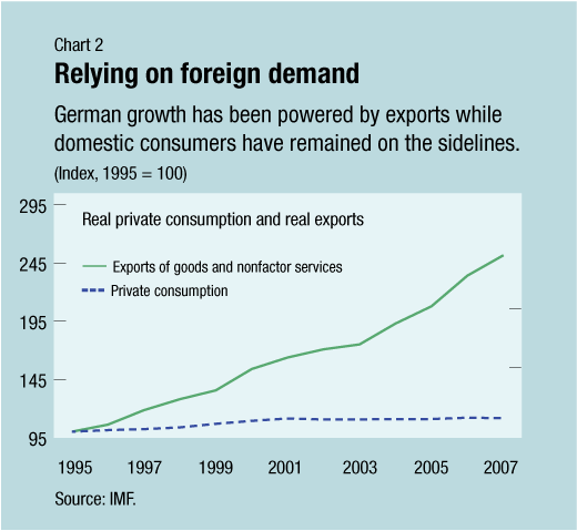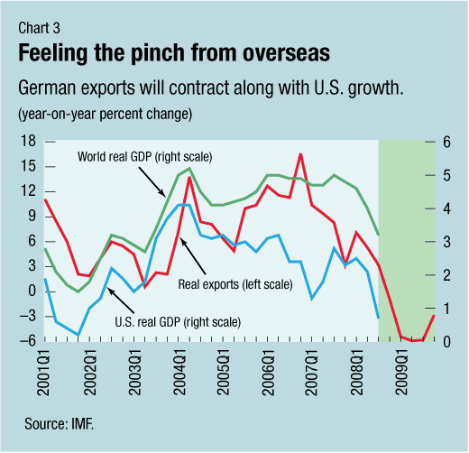 A combination of slowing demand for German exports because of the global recession, continued caution among German consumers, and a sharp drop in investment will result in a dramatic contraction in Europe's largest economy in 2009, according to an IMF analysis.