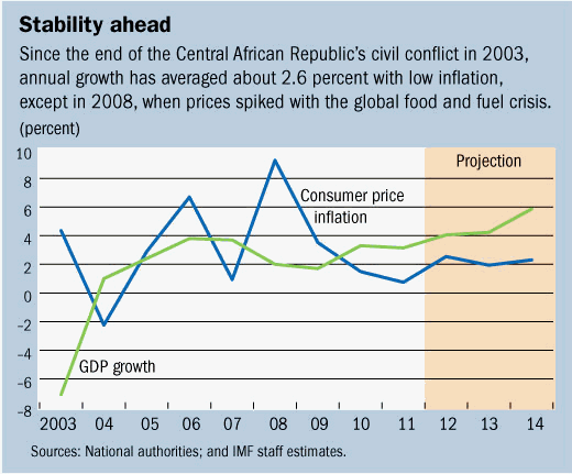 Recovering from, the country pursued sound macroeconomic policies with assistance from the IMF and key development partners. After receiving IMF support twice under the Emergency Post-Conflict Assistance facility, the landlocked central African state completed in September 2010 a 3-year program under the Extended Credit Facility.
