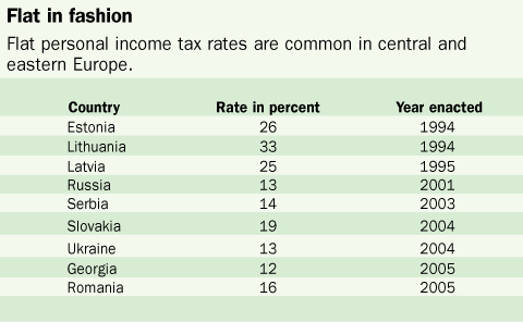 The key element in the fiscal reform package is a flat rate for personal income tax, following a widespread trend in the region (see table). The corporate income tax rate is also lowered in a phased manner, reflecting in part growing pressure from regional tax competition.