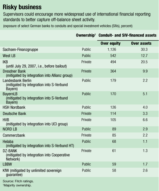 A case in point is the combination of high leverage ratios and the large scale of the conduits that were operated by the rescued institutions. More broadly, the recent turbulence has raised questions as to whether many banks—especially the Landesbanken—have viable business models. The latest report maps out policy options for effective banking sector restructuring, enhanced supervision, and successful crisis prevention and management.