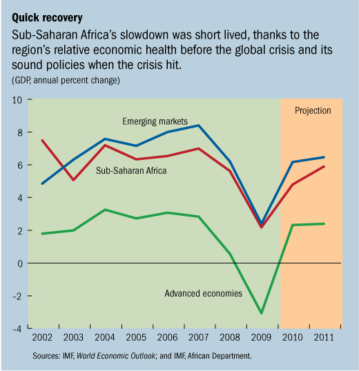 The IMF’s Regional Economic Outlook for sub-Saharan Africa said the sub-continent’s output is projected to expand by some 4¾ percent this year, up from 2 percent in 2009.