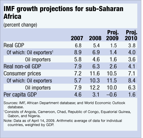 Hurt by the impact of the global economic recession, growth in sub-Saharan Africa is projected to decline from just under 5½ percent in 2008 to 1½ percent in 2009 before recovering to about 3¾ percent in 2010—still below its precrisis level, the IMF says in its regional outlook for the subcontinent.