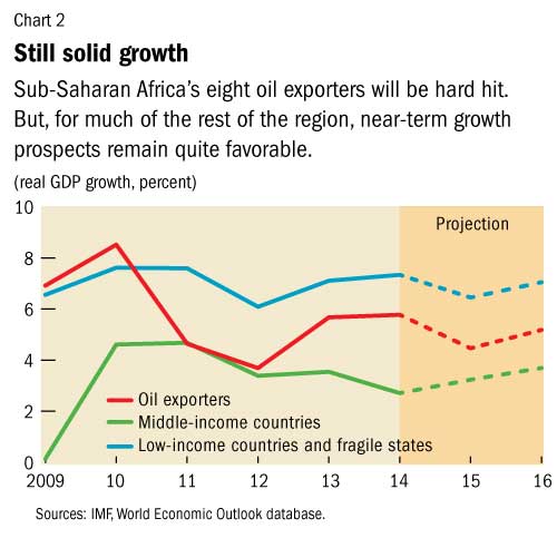The IMF’s latest Regional Economic Outlook for sub-Saharan Africa projects that the economy of the region is set to register another year of solid performance , expanding at 4½ percent in 2015. While this rate will be at the lower end of the range experienced over the last few years, sub-Saharan Africa will remain among the fastest growing regions of the world.