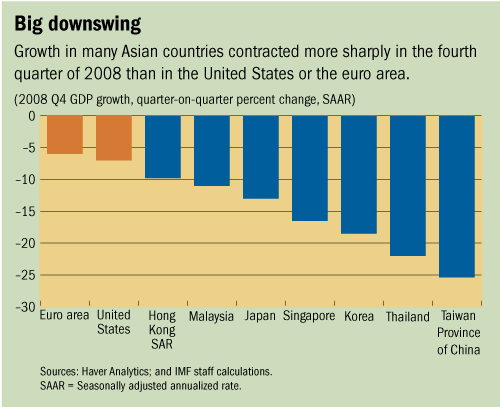 The impact of the global economic crisis on Asia has been swifter and often deeper than for other regions, partly because of Asia’s export dependence and close integration into the global economy, according to a new report by the IMF.