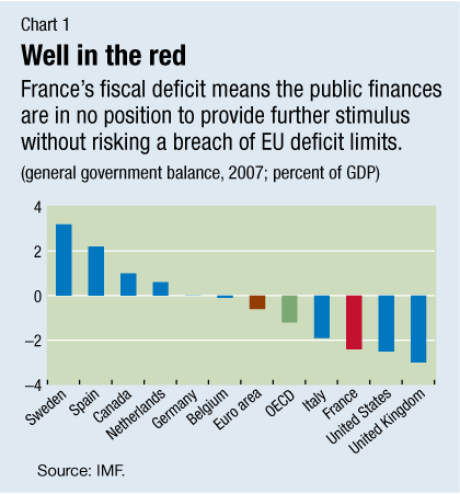 At the same time, fiscal policy has little, if any, room to operate in the short term. Tax cuts implemented in the second half of 2007 are already supporting domestic demand. With the deficit at 2.7 percent of GDP in 2007, the public finances are in no position to provide further stimulus without risking a breach of the 3-percent-of-GDP Maastricht deficit limit (see Chart 1)