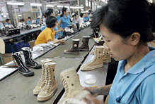Workers check shoes made for export on factory production line in Hanoi, Vietnam (Hoang Dinh Nam/AFP/Getty Images)