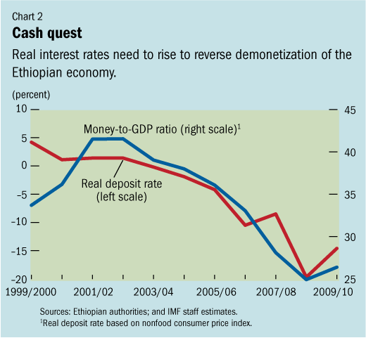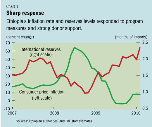 Ethiopia’s 2010 Article IV consultation discussions focused on adjusting policies to reverse the demonetization trend and foster sustained growth while reducing vulnerability to shocks.