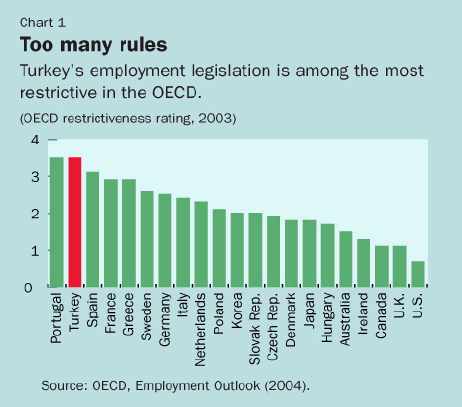 Turkey has some of the highest labor taxes and tightest regulations among members of the Organization for Economic Cooperation and Development (see Chart 1).
