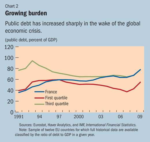 The financial crisis and economic downturn have taken a significant toll on public finances. While the fiscal stimulus in 2009-10 has been appropriate and helped cushion the downturn, the impact of the recession on the fiscal balance has worsened the already challenging debt situation associated with mounting aging-related spending pressures. The general government deficit rose significantly to 7 percent of GDP and the general government gross debt reached about 78 percent of GDP in 2009 (see Chart 2).