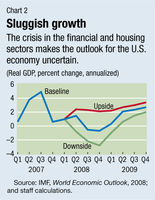 As a result, IMF staff projects that real GDP growth between the fourth quarter of 2007 and the fourth quarter of 2008 will be quite low and it will recover only gradually in 2009. Although inflation expectations have ticked up because of surging commodity prices, price pressures should be contained as commodity prices peak and economic slack rises.
