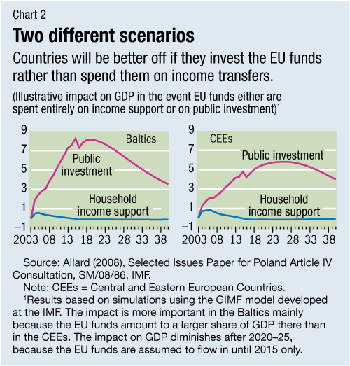 In sum, EU transfers to the new member states represent a tremendous opportunity to catch up with income levels in the richer part of Europe. But countries must spend the money wisely through investment in their countries' productive sectors.
