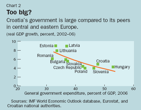 The analysis highlights how improvements to the business environment are critical to increasing Croatia's potential growth. In addition, potential growth would benefit from a reduction in the still-significant role of the state in the economy, in particular by reducing the ratio of public expenditure to GDP to levels more in line with regional standards, and by eliminating the drain on public resources from state-owned enterprises that have yet to be restructured.