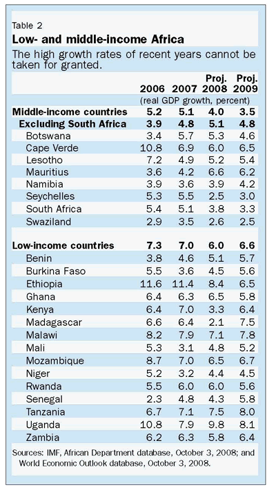 In 2009, the REO says, overall growth in sub-Saharan Africa is expected to remain above 6 percent.