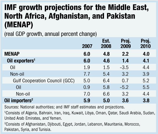 Oil exporters in the Middle East and North Africa have been directly hit by the global financial crisis through a sharp drop in oil prices and a drying up of capital inflows, but the blow has been softened by countercyclical government spending, according to the IMF’s new regional forecast.