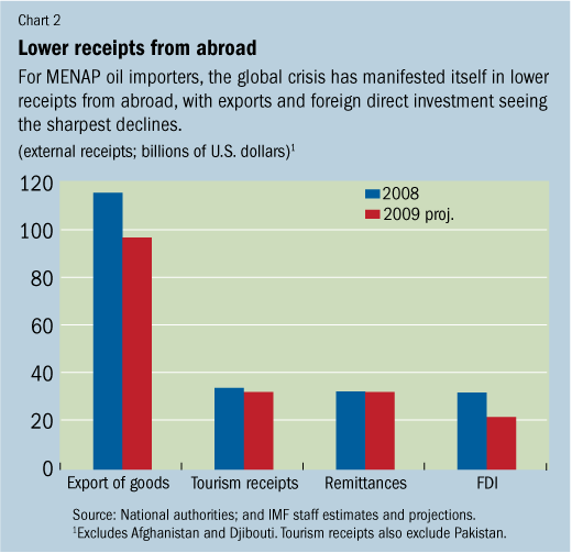 For the MENAP oil importers—Afghanistan, Djibouti, Egypt, Jordan, Lebanon, Mauritania, Morocco, Pakistan, Syria, and Tunisia—the slowdown has been less severe than in many other emerging markets, given their limited integration with global capital markets and positive spillovers from the region’s oil exporters. While more limited in scope, countries have also responded with appropriate countercyclical policies.