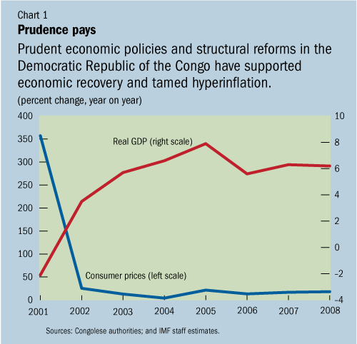 Following a decade-long conflict, the Democratic Republic of the Congo faces daunting development tasks. Since 2001, there has been important progress, notably the transition to a democratically elected government and the implementation of prudent economic policies and structural reforms that supported economic recovery and tamed hyperinflation (see Chart 1).