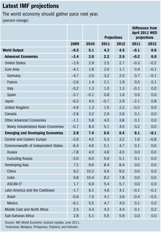 Although the IMF kept its forecast for global growth broadly unchanged at 4.3 percent for this year, rising to 4.5 percent in 2012, the 187-member institution said the mild slowdown in the second quarter of 2011 “is not reassuring.”
