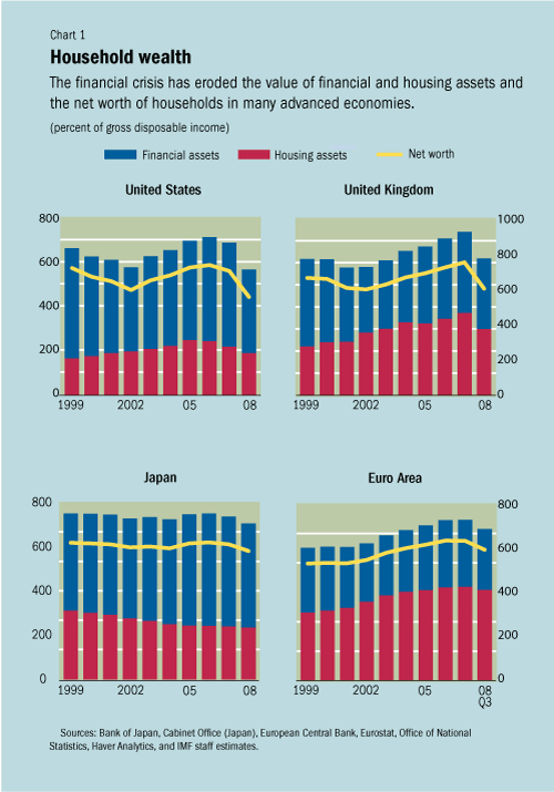 The financial crisis has erased a considerable amount of household wealth in many advanced economies. The precipitous fall in asset prices—across equity, bond, and housing markets—has eroded the value of financial and housing assets and the net worth of households, according to IMF research.