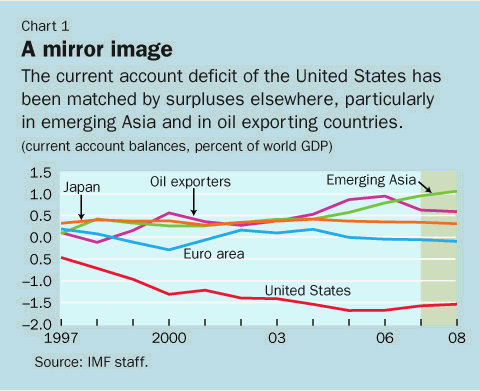 For example, some analysts point to low public and private savings in the United States and warn of the risks of a sharp and potentially disruptive correction in exchange rates (Obstfeld and Rogoff, 2005; Krugman, 2007). Others stress a "savings glut" in the rest of the world (Bernanke, 2005) or the attractiveness of U.S. financial assets for foreign investors (Caballero and others, 2006). For them, imbalances look more sustainable and thus pose fewer risks to the global economy.