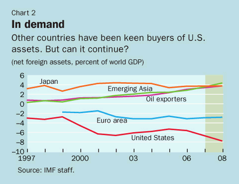 • When this adjustment will take place. Foreign demand for U.S. assets must eventually stabilize, but we have no good understanding of when, particularly with rapid financial globalization (see Chart 2).