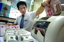 Counting Chinese currency in Jiangsu Province (photo: Reuters).