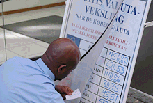 Clerk changes foreign exchange rates: IMF's Article IV consultations started after fixed exchange rate system broke down (photo: Francis Dean/Dean Pictures)