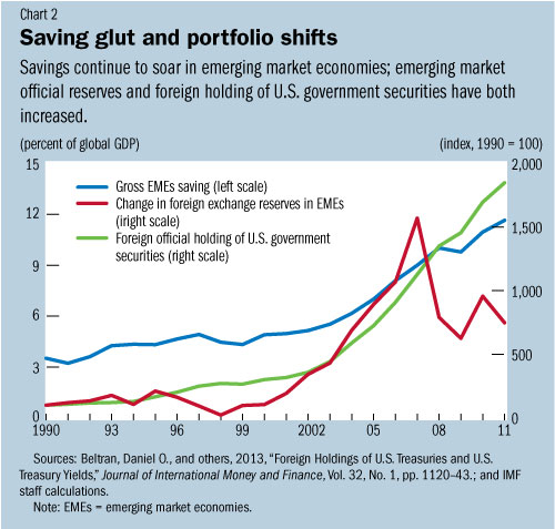 • Saving: emerging market economies’ saving rate increased significantly between 2000 and 2007, driving down interest rates. This increase is expected to be only partly reversed.