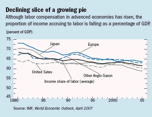 Is there a downside? Yes. Globalization is one of several factors that have reduced the share of income accruing to labor in advanced economies.