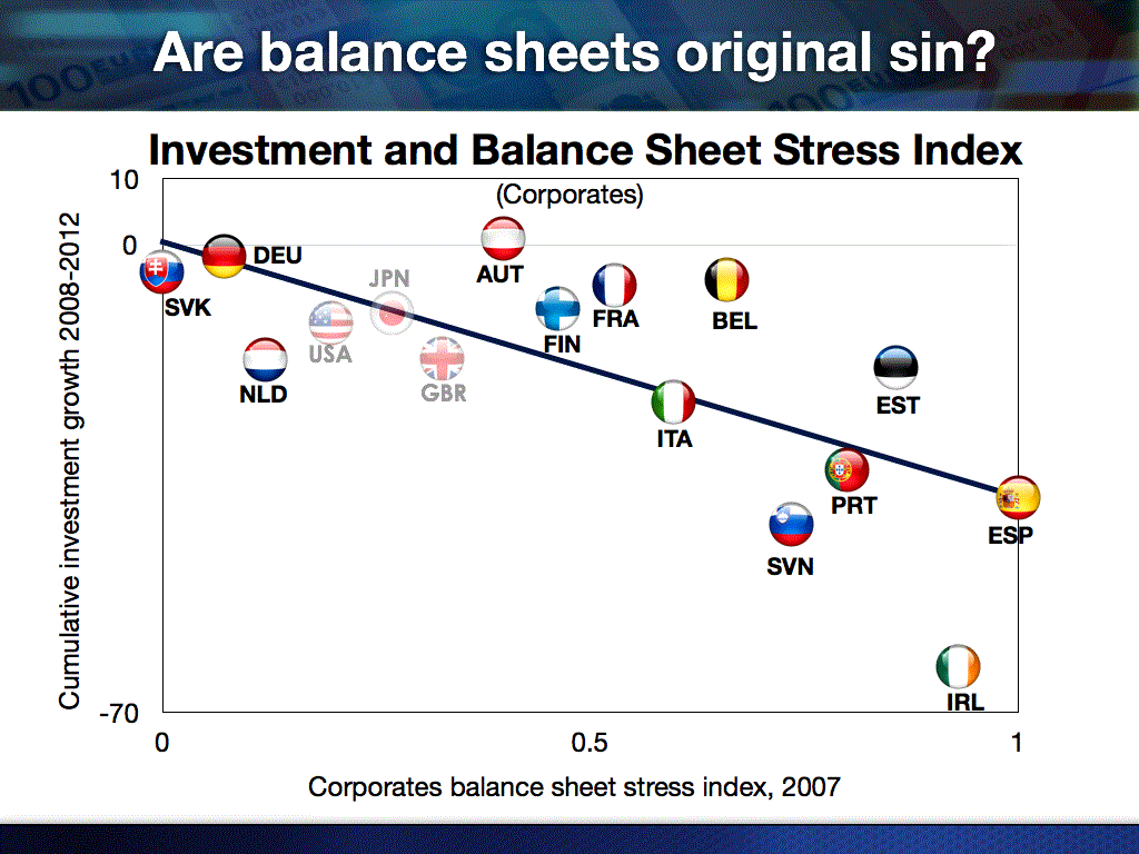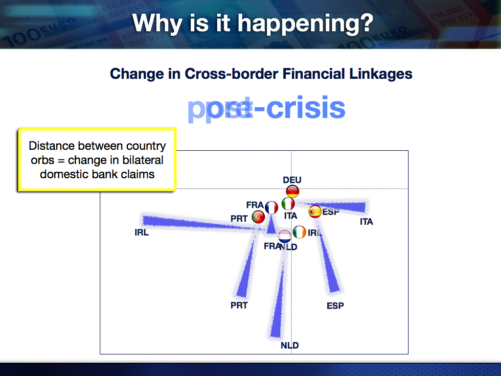 So when the crisis happened and the financial stability risks materialized, the result was pervasive and persistent financial market fragmentation in the euro area. This has led to unhealthy bank-sovereign links and an impaired transmission of monetary policy. All of this has weighed on the pace and strength of the recovery.