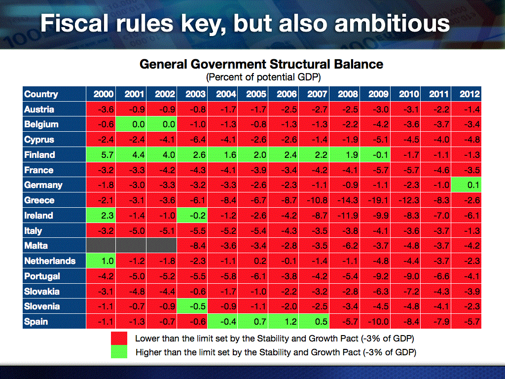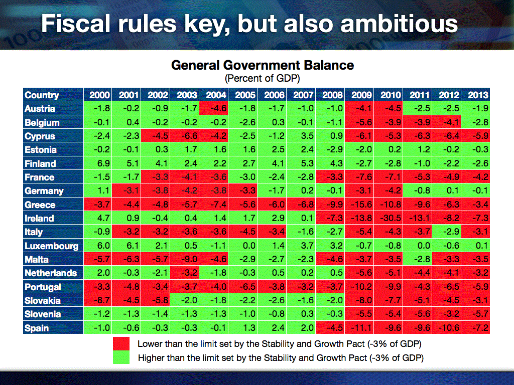 However, when Maastricht was being drawn up, such a loss of sovereignty was not politically feasible. A compromise was needed, one that would mitigate the risks, while at the same time preserving a large degree of members’ fiscal autonomy. As a result, the Maastricht framework and its implementing agreements, like the Stability and Growth Pact, tried to resolve these tensions by putting in place strict fiscal rules for members: