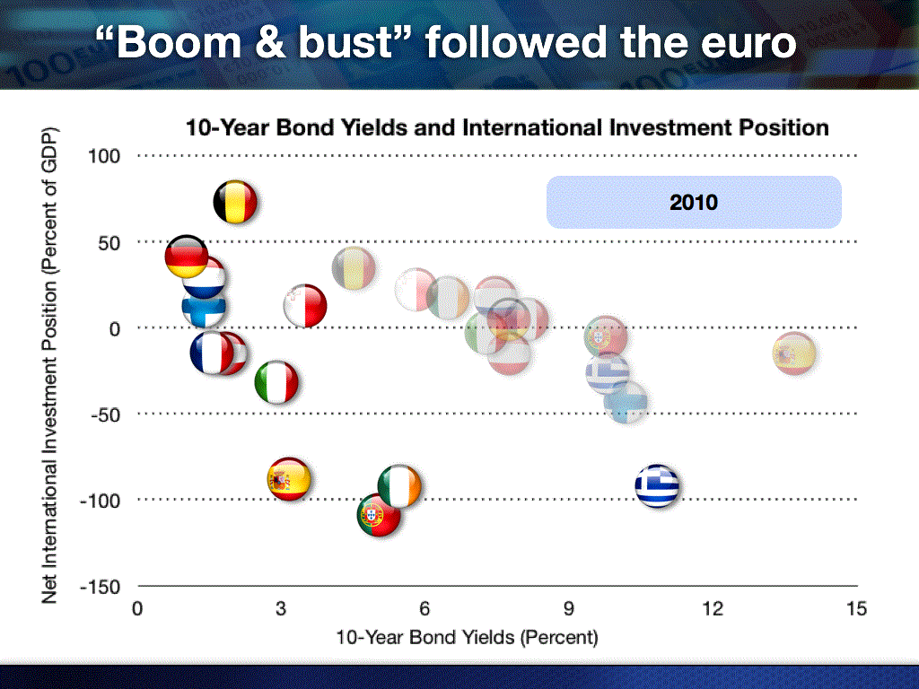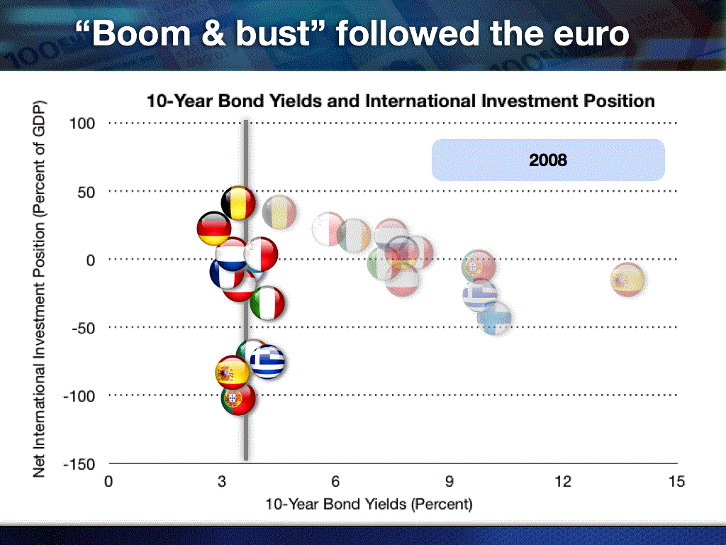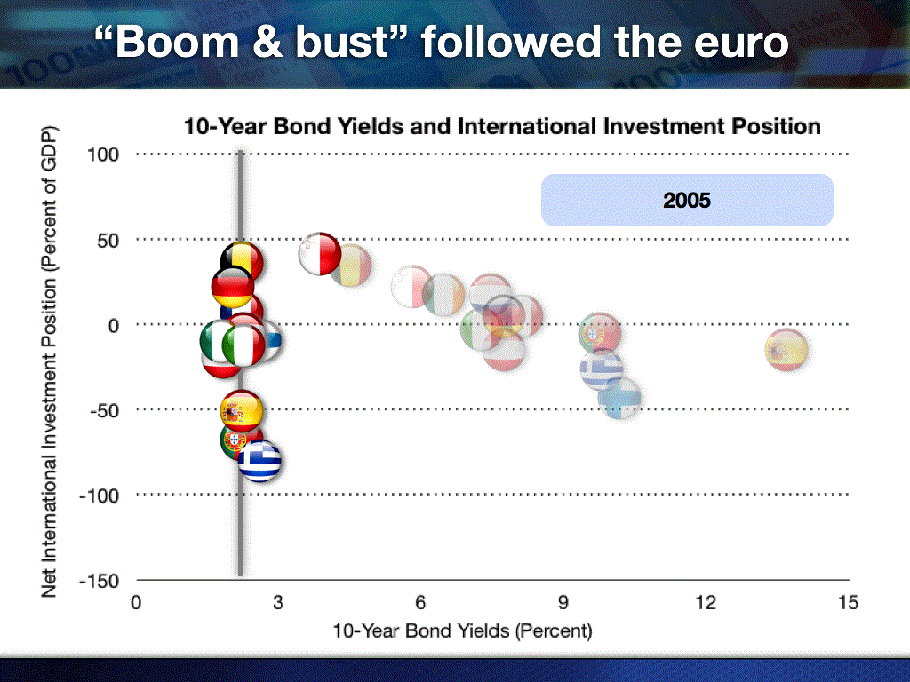 - But the pernicious forces at work before the crisis were not just about fiscal indiscipline, but more so, financial market indiscipline which priced risk more or less uniformly across the euro area and allowed, via banks, the build-up of large cross-border debts.