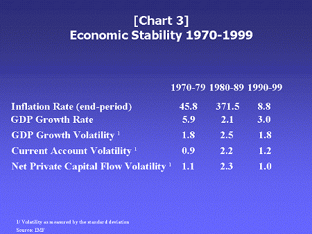 - Current account balances and capital flows were also more stable. The fact that net private capital flows were slightly less volatile in the 1990s than in the 1970s, is actually rather surprising given the two episodes of financial turmoil that hit the Region.