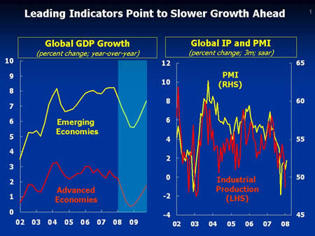 1. After five years of strong global growth, the protracted financial dislocations that began last summer are beginning to take their toll on global economic prospects.