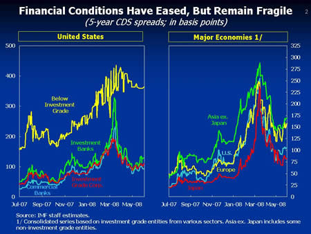• Risks posed by the financial crisis have moderated but remain to the downside. Market confidence remains fragile and financial conditions are expected to remain difficult for some time and could tighten further if a deteriorating macroeconomic outlook increases losses.