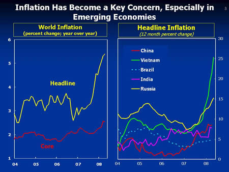 12. In sum, although the broad contours of our assessment in the April World Economic Outlook are unchanged, the uncertainty regarding inflation and rising commodity prices have exacerbated the challenges facing policy makers. At the IMF, we are working closely with our membership to identify appropriate policy responses at a time when policy tradeoffs have been brought into sharper focus.