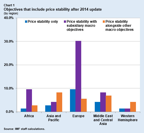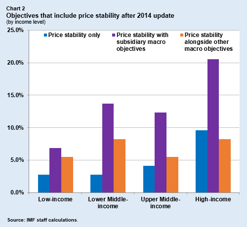 To see how the database can be used for research and policy-making, check out the examples below. The recently updated Charts 1 and 2 show which central bank laws include price stability as a central bank objective, both by region (Chart 1) and income level (Chart 2). A further distinction can be made in price stability only, price stability with subsidiary macro objectives (i.e., where price stability is the primary objective), and price stability alongside other macro objectives (i.e., where price stability is not the single primary objective). Chart 3 shows who is in charge of defining monetary policy within a central bank, varying from the Board, through a Monetary Policy Committee, the Governor, to the central bank as a whole, without a clear allocation of power determined in the law.