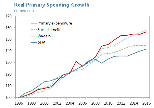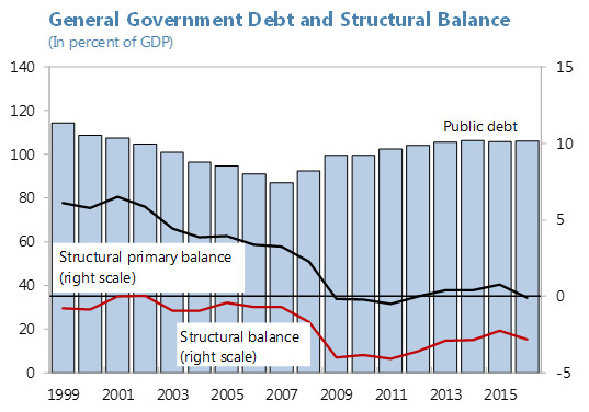 Following successful reforms during the government’s first year in office, the fiscal strategy veered off track in 2016, with a large overshoot of the deficit target. Given the high level of public debt and the increasingly uncertain external environment, it will be essential for the public sector to be both a source of stability and a contributor to stronger growth. Major efforts are therefore needed to make the public sector more efficient and to pursue reforms that would raise the country’s growth potential. Staff recommends to:
