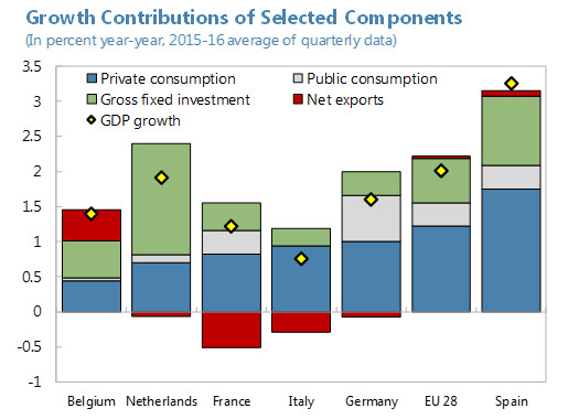Growth has increasingly been driven by investment and net exports, while private consumption growth was more subdued than in peer countries. The stock of public capital is low after years of underinvestment.