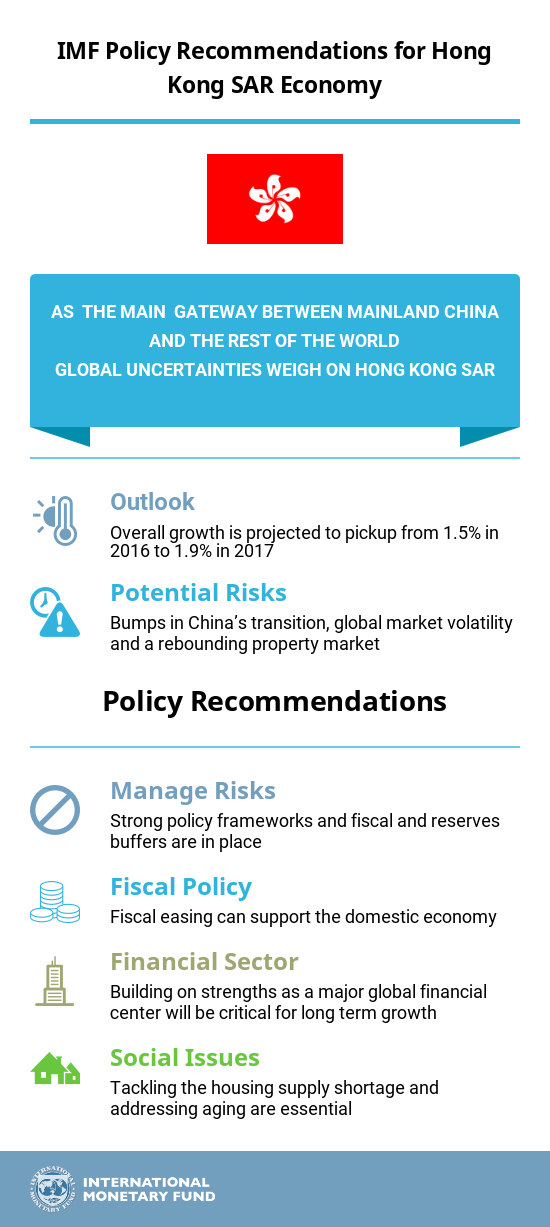 On January 6, 2017, the Executive Board of the International Monetary Fund (IMF) concluded the Article IV consultation discussions [1] with Hong Kong Special Administrative Region (SAR) , and considered and endorsed the staff appraisal without a meeting on a lapse-of-time basis. [2]
