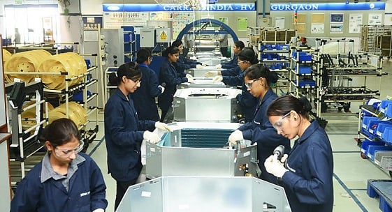 Women workers at an air conditioner plant in Gurgaon, India. Reforms that support more women working can strengthen India's ongoing recovery (photo: Ramesh Pathania/Mint/Getty Images)