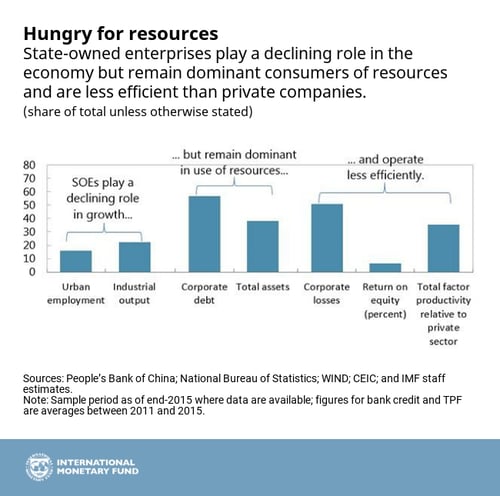 Reform of these enterprises has indeed been a lynchpin of China’s economic transformation, as highlighted in a recent IMF publication, Modernizing China: Investing in Soft Infrastructure. China needs to accelerate the pace of reforms to improve growth potential and contain risks associated with ballooning corporate debt. Preliminary evidence suggests that reforms could raise China’s output by 3–9 percent over a decade.