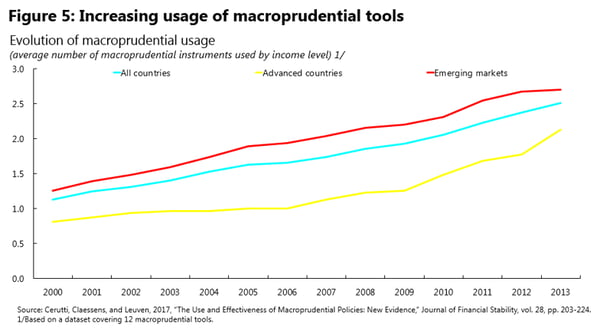 A second group of studies pursues a cross-country approach. It also finds that macroprudential instruments indeed have an economic effect on financial variables, but subject to some cross-border offsets. For example, Cerutti, Claessens, and Laeven , covering up to 119 countries, find that the effects of macroprudential tools are less powerful in financially more developed and open economies, and deployment comes with greater cross-border borrowing, suggesting possible avoidance. In principle, this avoidance could be limited through adapting financial-sector regulations, seeking foreign reciprocity, or adopting capital flow management tools. The Fund is currently analysing the interaction of CFMs and MPMs in the light of its Institutional View on CFMs.